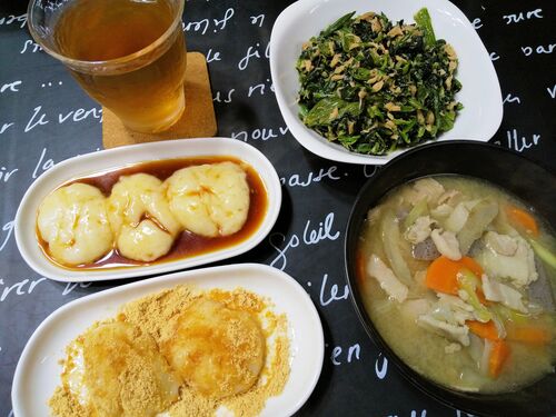 帰省後です、また始まりました夕食づくり。 数日料理をしない日があるとリフレッシュされて気合が入るのでまた頑張っていこうと気持ちが入る。 餅二種、ほうれん草とツナのオイスター炒め、豚汁。 (餅&ツナ缶&調味料含まず4人分合計約980円) この日は鏡開…