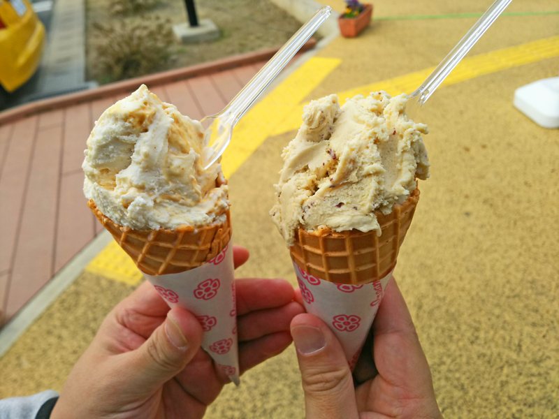 2017-12-22 東金ジェラート ダイアリー ドライブがてらの東金の道の駅。 すごく寒いけど、お口がジェラートの口だったから食べちゃうよ。 焼きいものジェラートと落花生のジェラートです☆ しかもリアル焼きいもも少し食べさせてもらえて、これをジェラートにしていますって。 ジェラート、とにかく濃い~~~すごいそのままの味。 どこのジェラート食べてもハズレがないからジェラートってすごいと思う。